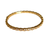 Bracelete rígido dourado com design elegante e sofisticado. O modelo apresenta uma estrutura segmentada em pequenos blocos geométricos, criando um efeito moderno e dinâmico.