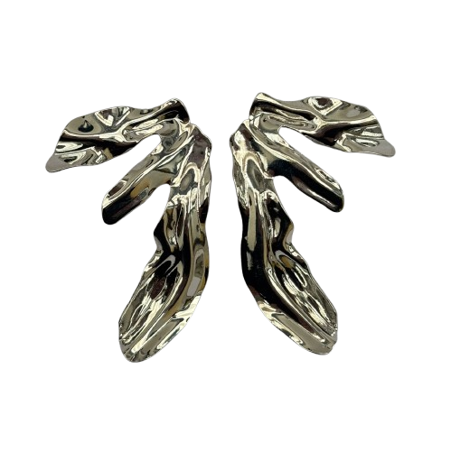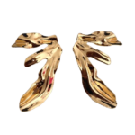 Esses são brincos dourados de design moderno e abstrato, com uma estética escultural e fluida. O formato assimétrico e orgânico lembra formas naturais, como folhas, conferindo um visual sofisticado e artístico. O acabamento metálico brilhante reflete a luz, destacando a peça e agregando um toque de elegância. Ideais para compor looks ousados e sofisticados, perfeitos para quem busca acessórios únicos e marcantes.