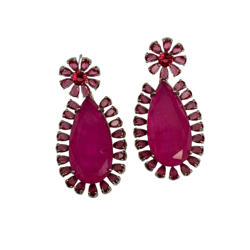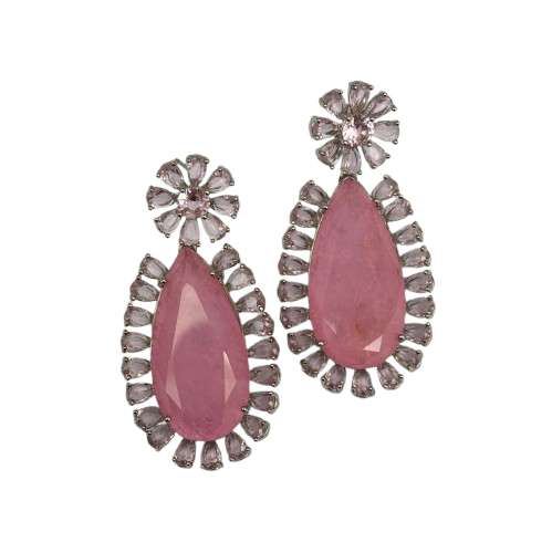 Este brinco é uma verdadeira declaração de estilo para quem ama acessórios ousados e cheios de personalidade. Com uma base em formato de flor, cravejada de micro zircônias, ele apresenta um design elegante que desce até uma gota alongada em tom rosa intenso, cercada por uma moldura também cravejada. O brilho suave das pedras pequenas contrasta lindamente com o destaque da pedra central, criando um efeito visual apaixonante. Ideal para ocasiões especiais, ele eleva qualquer look, transformando o simples em sofisticado com muita facilidade.