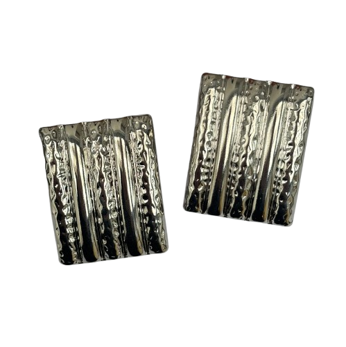 Esses brincos dourados de formato quadrado possuem um design sofisticado e imponente, marcado por detalhes texturizados que criam um efeito tridimensional. As linhas verticais em relevo conferem um ar moderno e elegante, enquanto o acabamento polido garante um brilho luxuoso e sofisticado.