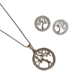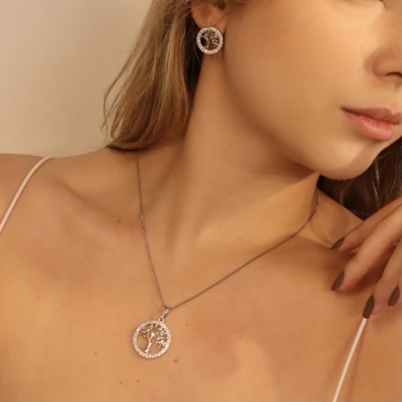 Este conjunto apresenta o símbolo da Árvore da Vida, uma representação de força, crescimento e conexão com a natureza. Com um design sofisticado, os acessórios possuem um acabamento brilhante e detalhes em pedrarias que adicionam um toque de elegância.