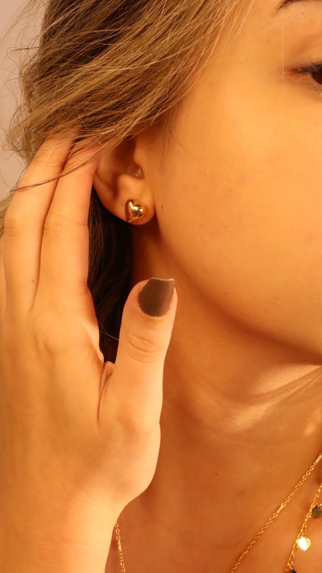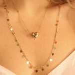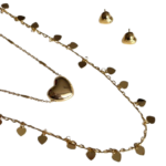 Conjunto delicado e romântico, perfeito para quem busca um toque sutil de elegância no dia a dia. Composto por dois colares em camadas e um par de brincos, ele apresenta detalhes encantadores como um pingente de coração e pequenas plaquinhas metálicas ao longo da corrente.