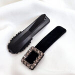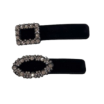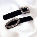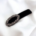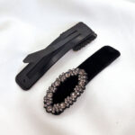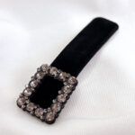 É uma peça moderna e elegante, que combina o design contemporâneo com o brilho das pedras cravejadas, criando um acessório sofisticado e cheio de charme. Sua principal característica é a ponta da presilha decorada de maneira cuidadosa e precisa, proporcionando um efeito visual cintilante. O design da ponta cravejada pode variar entre dois detalhes geométricos que conferem um toque de ousadia à peça.