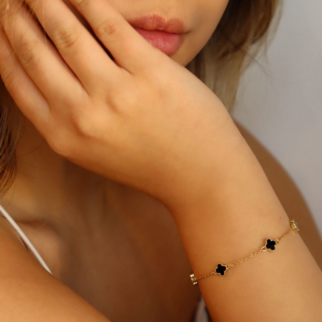 Ao escolher a Pulseira Trevos Pretos, você aposta em um acessório cheio de significado, com um toque contemporâneo e acabamento impecável — perfeito para mulheres que valorizam peças únicas, delicadas e elegantes.